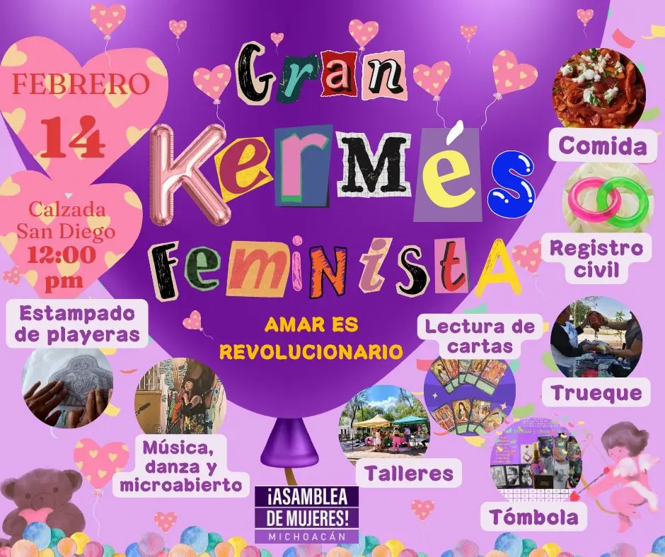 La Asamblea de Mujeres Michoacán anunció la Gran Kermés Feminista “Amar es revolucionario”, un evento pensado para mujeres que quieran pasar San Valentín con amigas en un ambiente seguro, divertido y con causa.